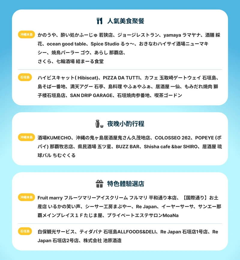 The participating stores in this event are mainly from Okinawa and Ishigaki Island, and more stores will continue to be added. Popular stores and popular time slots may also fill up quickly.