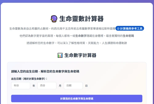 数秘術を初めて学ぶ方にとって、最も簡単な方法は数秘術計算機を使うことです。生年月日を入力するだけで、システムが自動的に足し算と簡略化を行い、瞬時にあなたの数秘術番号を算出します。