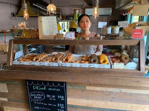 沖繩必吃|沖繩甜甜圈店內,讓人停下來拍照的小巧空間
