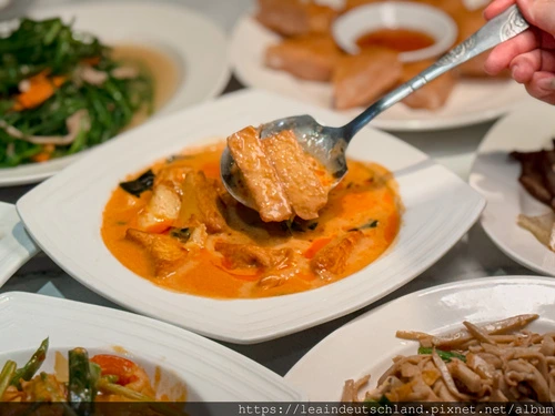 香濃椰汁搭配滑嫩豆腐,口感溫潤細緻。這道超下飯,醬汁鹹度剛好很好吃。