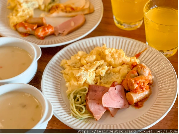 這次住宿也有提供早餐,是 Buffet 自助式,特別的是義式料理:義大利麵、薄餅、沙拉、炒蛋,第一次吃到這樣的早餐覺得很新鮮。每一份都用鑄鐵鍋盛裝,保溫所以吃到都是熱熱的,整體餐點精緻也好吃。住下來的感受是舒適乾淨,能感受到旅舍很多小巧思和用心,大家來高雄玩可以來住這裡唷~