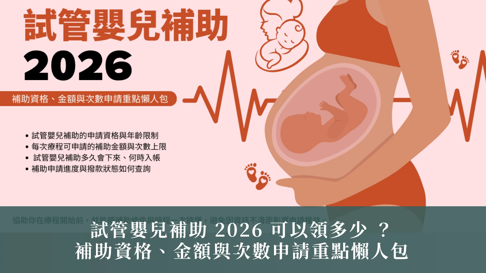 依中央政府現行的試管嬰兒補助制度,2026 年仍持續提供試管嬰兒補助,並依受術妻年齡、申請次數與家庭身分,規劃不同的補助金額與撥款流程。