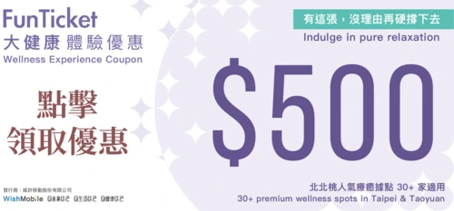 身體需要被照顧,心情也需要出口。現在就點擊領取 FunTicket 大健康優惠,即日起至 10 月底,台北、新北、桃園超過 40 間合作店家任你選擇,用一次療程換回滿滿能量。